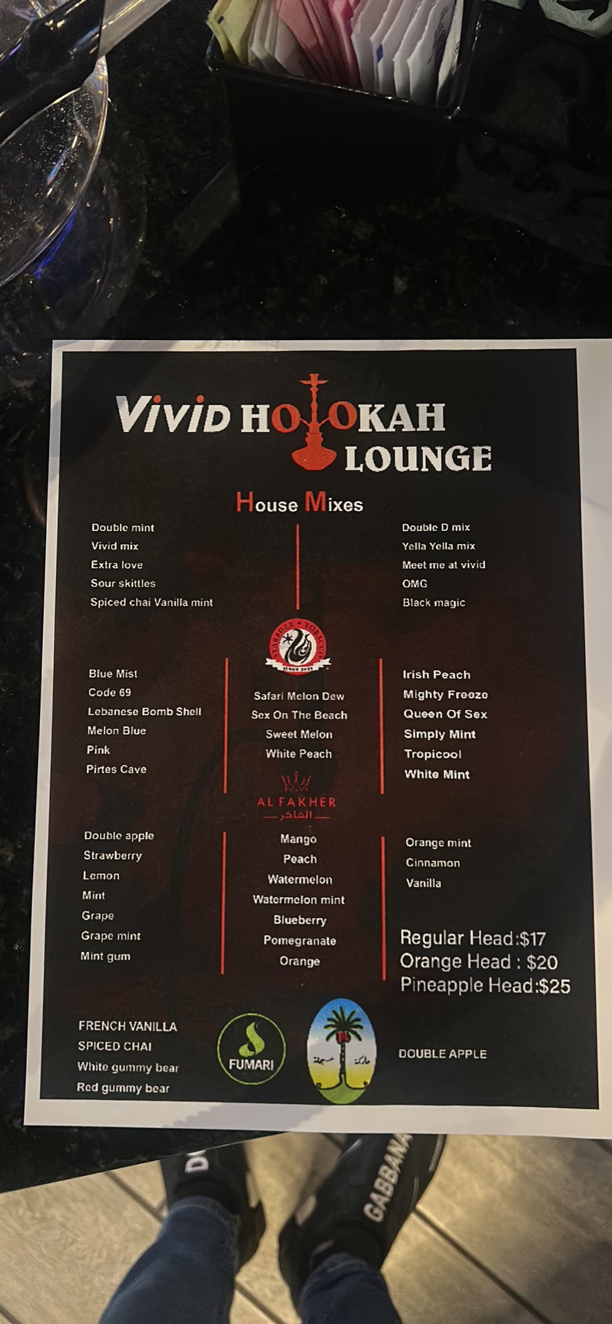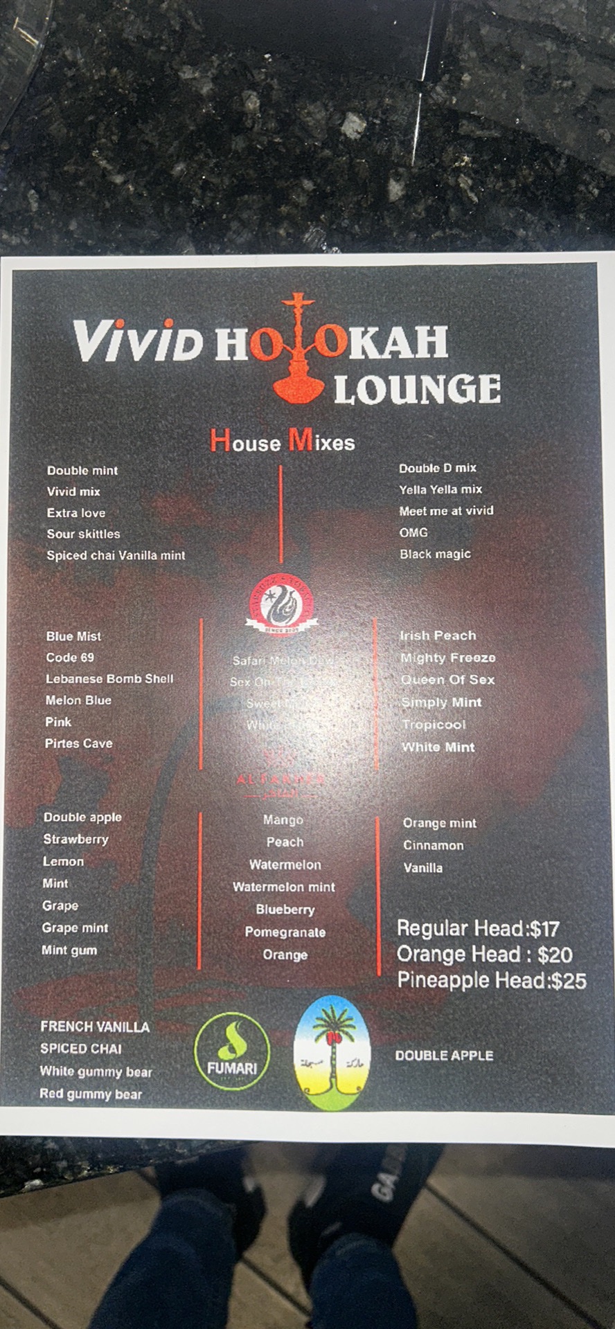Regulars often rave about the knowledgeable staff who are eager to share their expertise, helping newcomers navigate through an extensive menu that promises something for everyone. Whether you’re exploring new flavors or indulging in time-honored favorites, Vivid Hookah Lounge transforms every visit into a memorable occasion where community meets culture in delightful harmony.